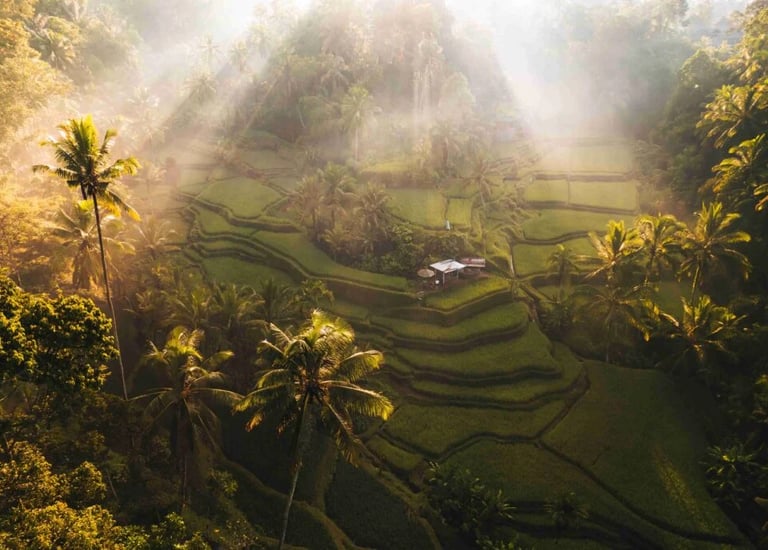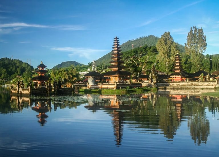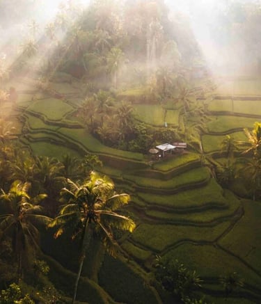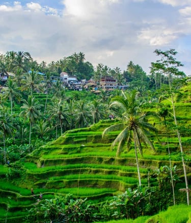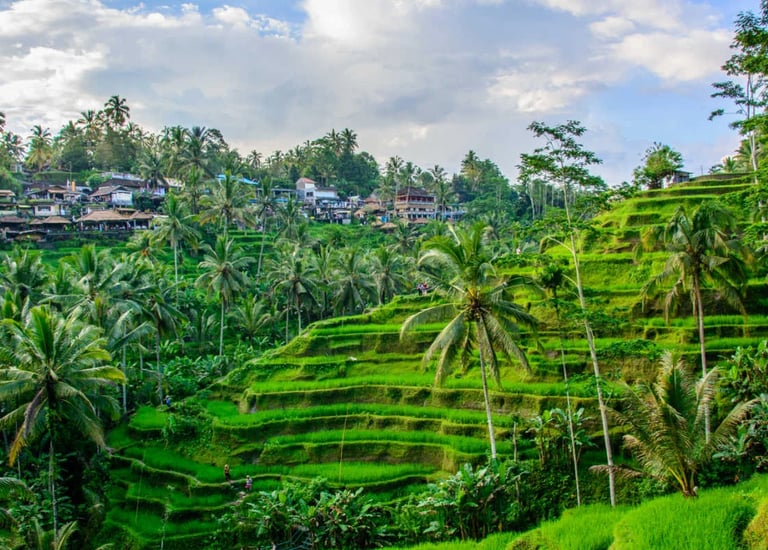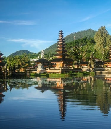 Batur Volcano, rice terraces, and hot springs before reaching the cultural heart of Bali.