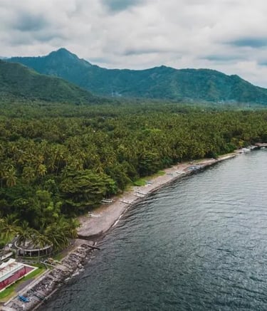 Volcano Views and Thermal Springs. Ride towards the magnificent Mount Batur volcano, capturing stunning scenic views of the caldera. The highlight is a relaxing stop at the Batur hot springs, where you receive a complimentary 30-minute thermal massage to prepare your body for the long journey ahead. The day concludes near the East Coast (Amed area).